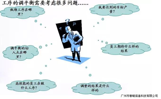 如果有瓶颈工序,星空应及时调配员工的工序分配,问题工序可适当的分拆开或者重组,如果 组上没有平衡问题,但产量又达不到目标时,要注意 道工序的时间是否比后面的时间长,相对来讲,在作业内容较多的情况下,容易拉平衡。